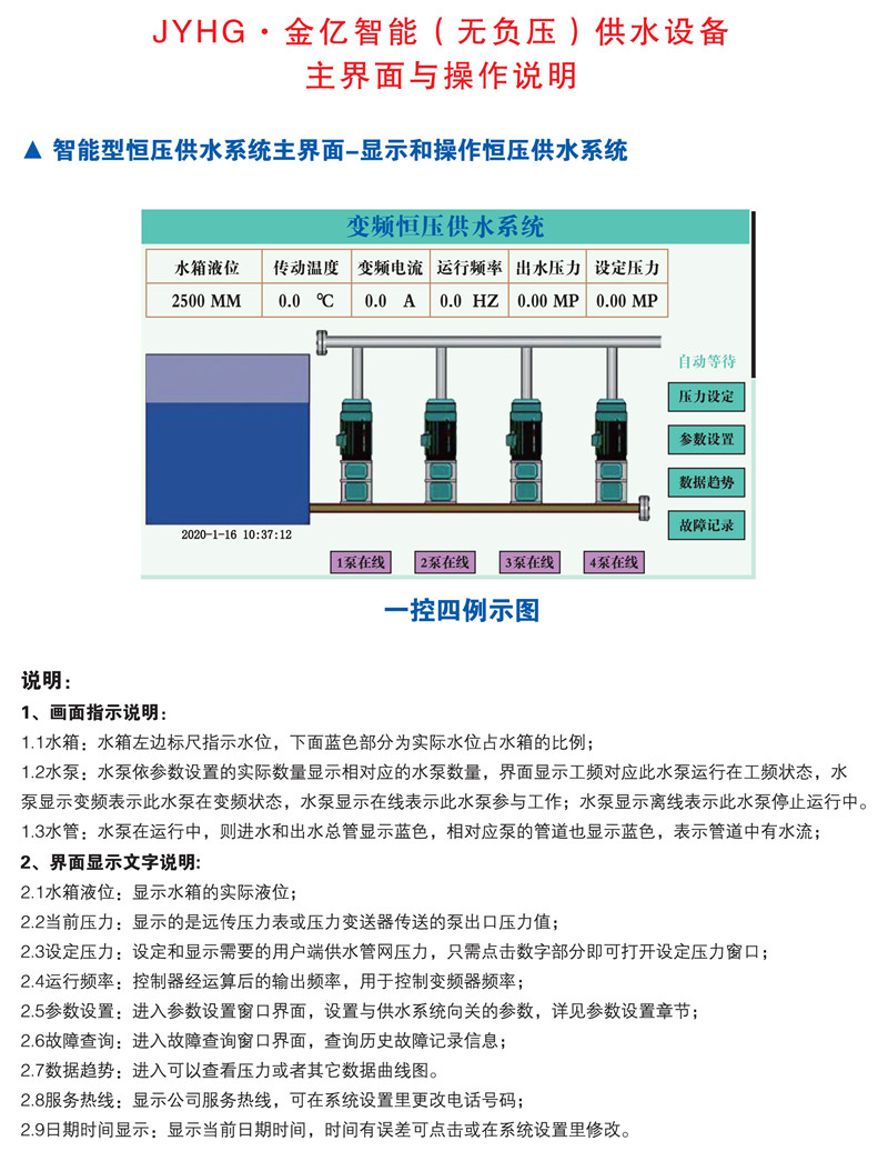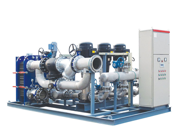 換熱機組的構(gòu)成及工作原理換熱機組是集成板式換熱器、循環(huán)泵、補水泵、電控柜、溫控裝置、各種傳感器、熱量計、溫度計、壓力表、管路和閥1門等于- -體,并組裝在公共底座上的熱交換成套組合裝置。一次側(cè)熱源(蒸汽、高溫水等),經(jīng)過除污器過濾后,進(jìn)入板式換熱器與二次側(cè)循環(huán)水進(jìn)行熱交換,然后返回一次側(cè)回水管網(wǎng)。二次側(cè)循環(huán)水經(jīng)過除污器過濾、循環(huán)泵加壓后,進(jìn)入板式換熱器與一次側(cè)熱源進(jìn)行熱交換,然后進(jìn)入二次側(cè)供水管...